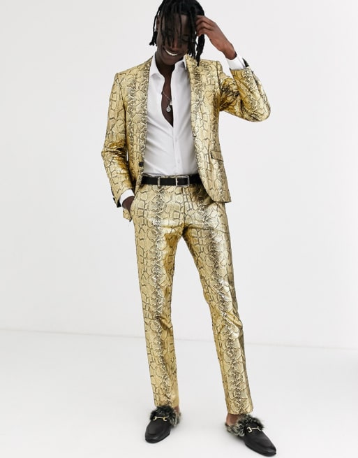 Twisted Tailor – Superenger Anzug mit goldenem Schlangenmuster