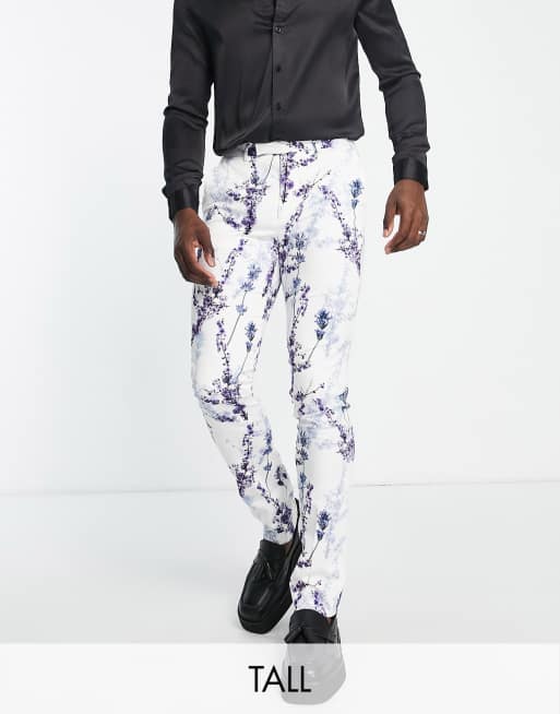 Twisted Tailor Tall – Lavadino – Enge, elegante Hose in Weiß mit Blumenmuster