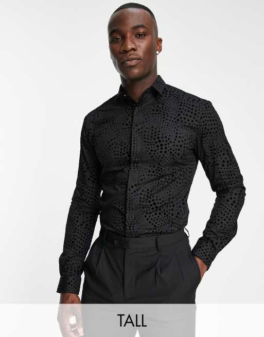 Twisted Tailor – Vasanthan – Schwarzes Hemd in Tall mit geometrischem Muster in beflockter Optik