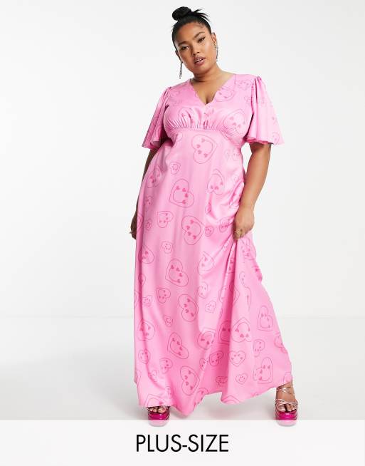 Twisted Wunder Plus – Maxikleid mit Flatterärmeln und fröhlichem Herzmuster