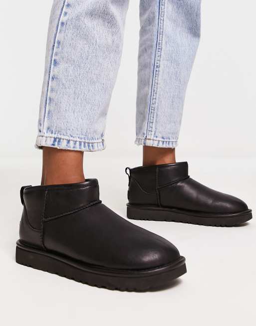 UGG – Classic Ultra Mini – Stiefel aus Leder in Schwarz