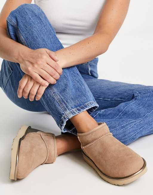 UGG – Classic Ultra Mini – Stiefel in Hellbraun und Roségold