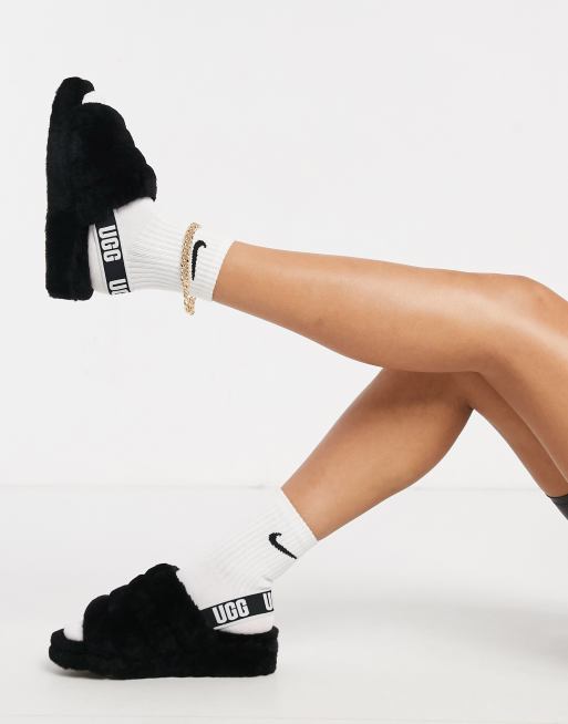 UGG – Fluff Yeah – Schwarze Hausschuhe im Slider-Design