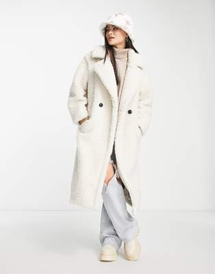 UGG – Gertrude – Langer Mantel aus Teddyfell in Winterweiß