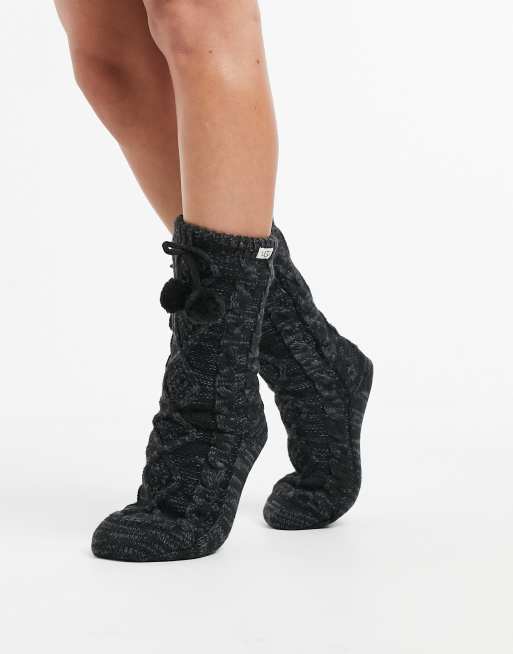 UGG – Mit Fleece gefütterte Socken mit Bommel in Grau