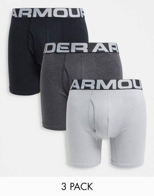 Under Armour – Charged Cotton – 3er-Pack Baumwoll-Boxershorts in Grau, 6 Zoll