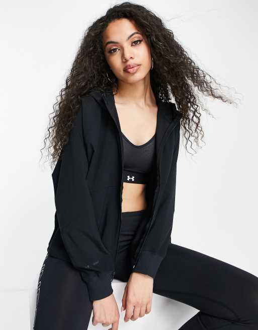 Under Armour – Jacke mit Reißverschluss in Weboptik in Schwarz