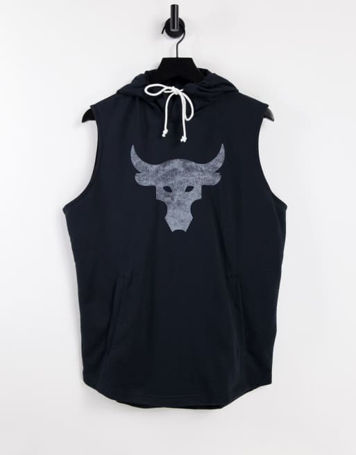 Under Armour – Project Rock Terry – Ärmelloser Kapuzenpullover in Schwarz