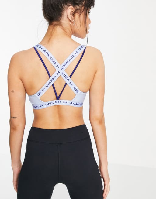 Under Armour Training – Sport-BH mit gekreuzten Trägern auf der Rückseite und mittlerer Stützfunktion in Blassblau