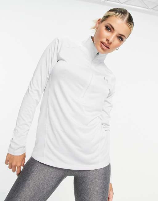 Under Armour – Training Tech – Twist-Oberteil in Hellgrau mit halbem Reißverschluss