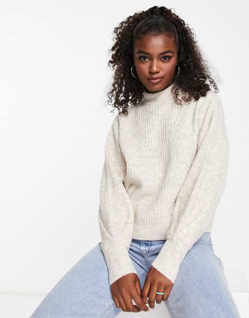 Urban Bliss – Strickpullover in Hellbeige mit Ballonärmeln