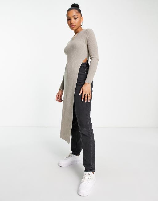 Urban Revivo – Longline-Strickoberteil in Taupe