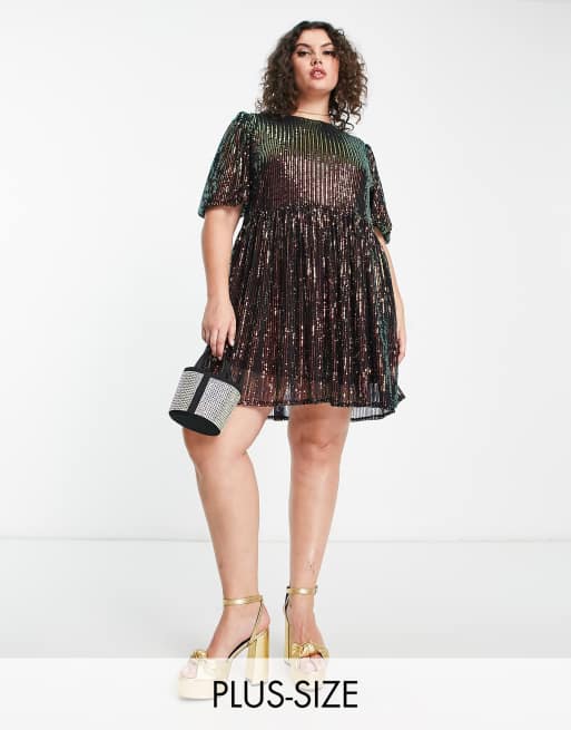 Urban Threads Plus – Midi-Hängerkleid mit Paillettenbesatz in Schwarz