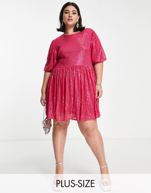 Urban Threads Plus – Mini-Hängerkleid mit Paillettenbesatz in Pink