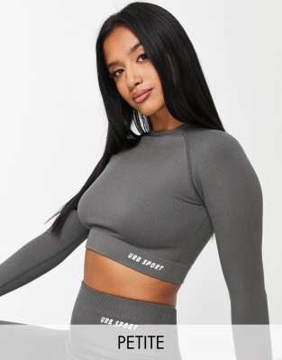 Urban Threads Petite – Nahtloses, langärmliges Sport-Oberteil mit kurzem Schnitt in Anthrazit