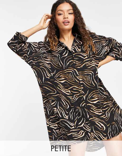 Urban Threads Petite – Oversize-Hemdkleid mit abstraktem Animalprint