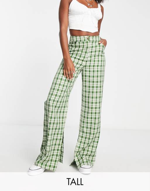 Urban Threads Tall – Karierte Hose in Grün mit weitem Bein, Kombiteil