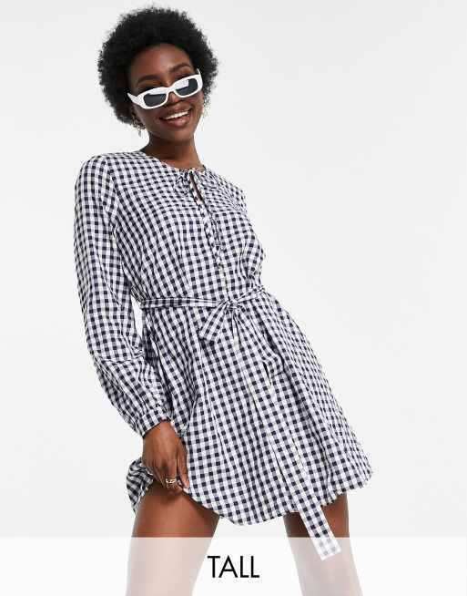 Urban Threads Tall – Hemdkleid mit Taillenschnürung und blauem Karomuster