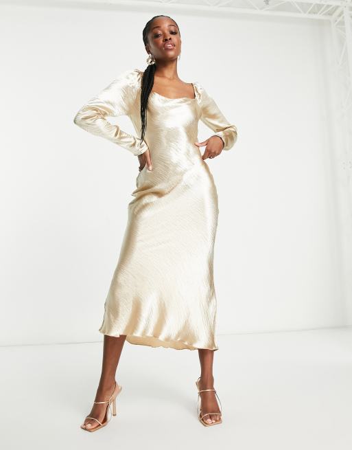 Urban Threads – Satin-Midikleid in Champagner mit Wasserfallausschnitt