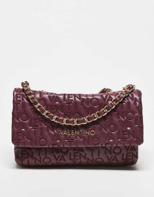 Valentino – Dram – Umhängetasche in Burgunderrot mit Logo-Stickerei und Tragekette
