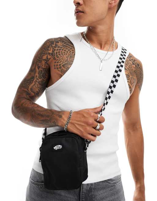 Vans – Go Getter – Schwarze Schultertasche mit Schachbrettmusterriemen