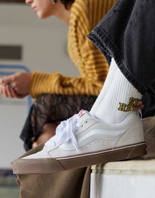 Vans – Knu Skool – Klobige Sneaker in Weiß mit Gummisohle