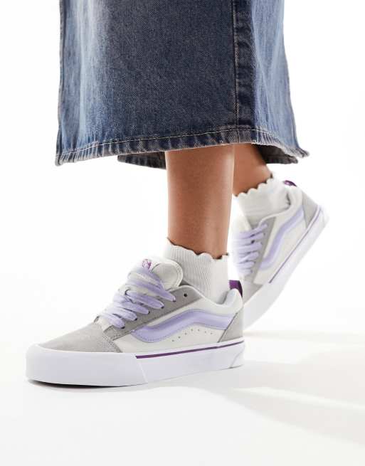Vans – Knu Skool – Sneaker in Grau und Weiß mit Schnürsenkeln in Lila