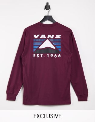Vans – Langärmliges T-Shirt mit Bergmotiv auf der Rückseite in Burgunderrot, exklusiv bei ASOS