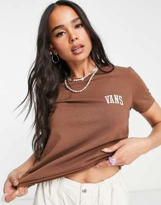 Vans – Logo – Knapp geschnittenes T-Shirt in Braun mit Logoprint, exklusiv bei ASOS