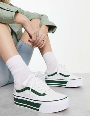 Vans – Old Skool Stackform – Sneaker in Weiß mit grünen, sportlichen Streifen