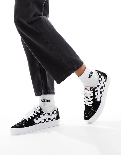 Vans – SK8 – Niedrig geschnittene Sneaker in Schwarz mit Schachbrettmuster