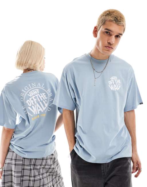 Vans – T-Shirt in Staubblau mit rundem Logoprint auf dem Rücken