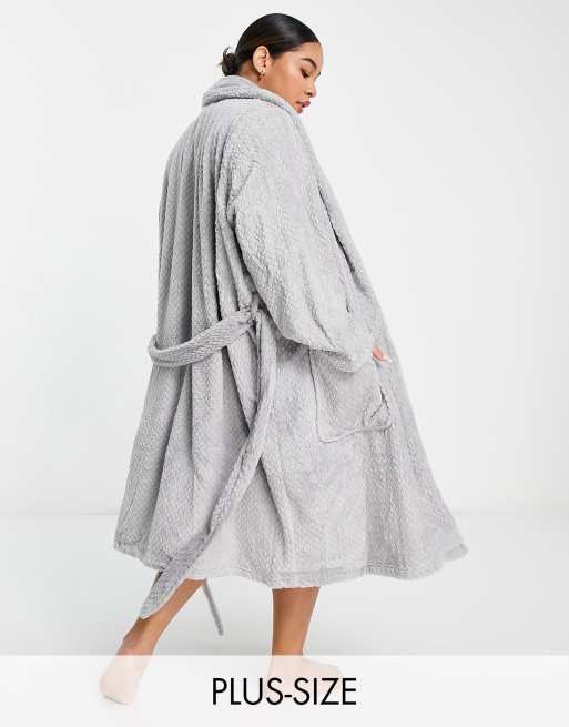 Vero Moda Curve – Flauschiger Bademantel in Grau