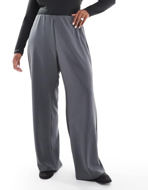 Vero Moda Curve – Lockere Schlupfhose in Grau mit Nadelstreifen