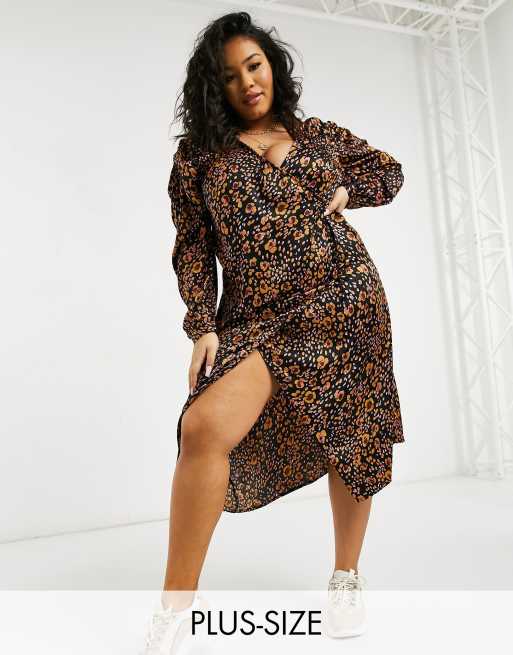 Vero Moda Curve – Midi-Wickelkleid mit Puffärmeln und Blumenmuster