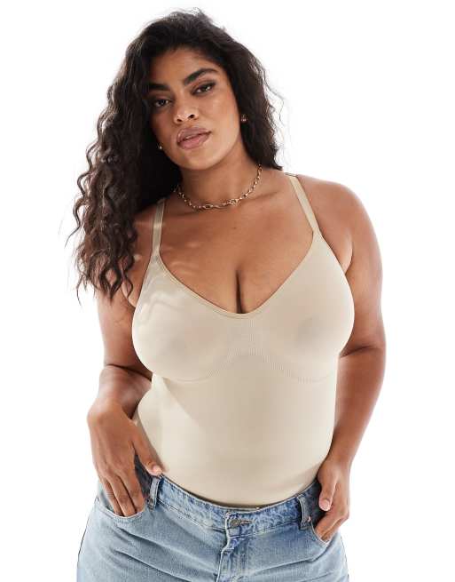 Vero Moda Curve – Nahtloser Riemchen-Tanga-Body in Beige