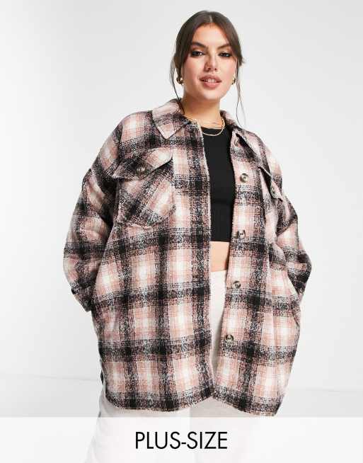 Vero Moda Curve – Oversize-Hemdjacke in Rosa kariert
