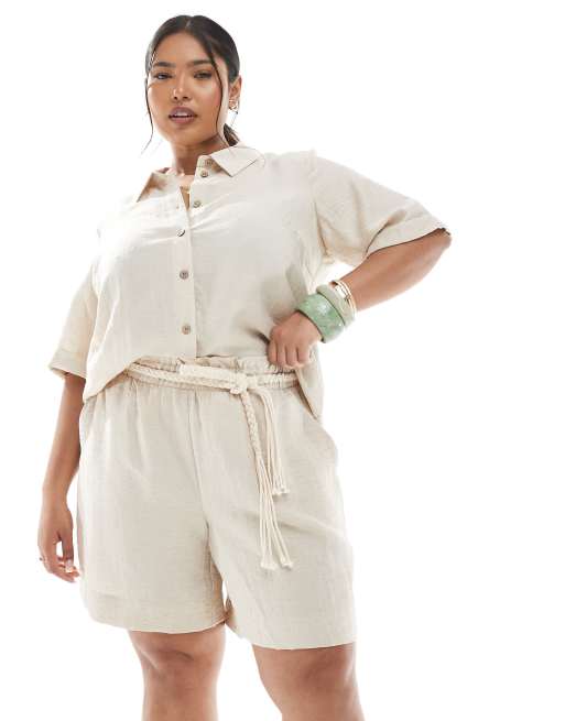Vero Moda Curve – Set aus Hemd und Shorts in Hellbeige