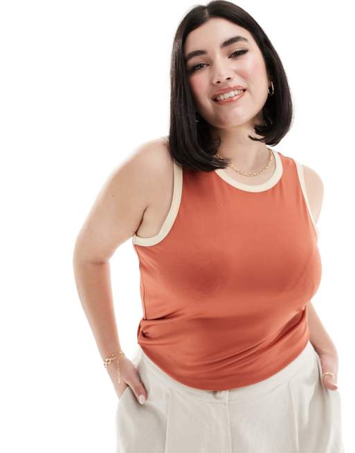 Vero Moda Curve – Sportliches Tanktop in Rostrot mit Kontrast-Besatz