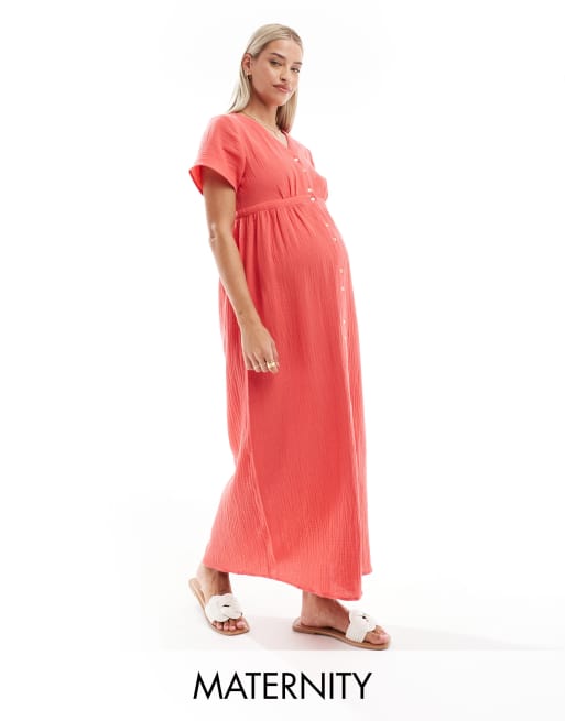 Vero Moda Maternity – Midikleid in Mohnrot mit Knopfleiste, Umstandsmode