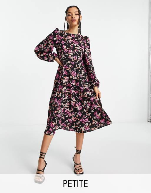 Vero Moda Petite – Exklusiv – Midikleid mit Ballonärmeln und Blumenmuster