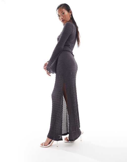 Vero Moda Petite – Strukturierter Maxirock in Asphaltgrau aus Jersey, Kombiteil