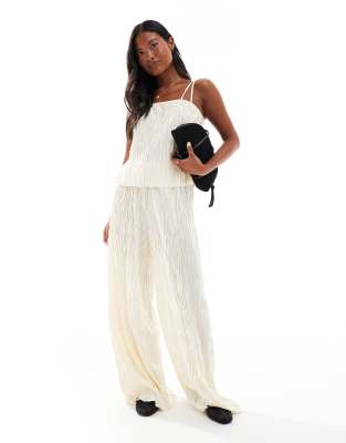 Vero Moda Petite – Strukturiertes Plissee-Set in Birken-Cremeweiß, aus Camisole mit zweireihigen Trägern und weit geschnittener Hose