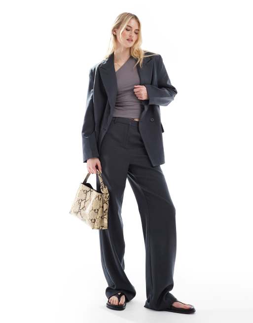 Vero Moda Tall – Elegante Hose in Dunkelgrau meliert mit Fischgrätmuster und weitem Bein, Kombiteil