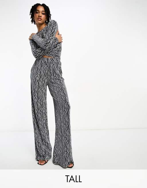 Vero Moda Tall – Hose mit weitem Bein in Glitzersilber