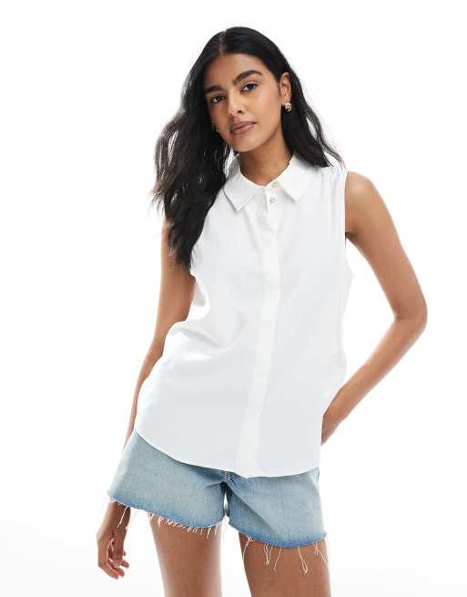 Vero Moda – Ärmelloses, ausgestelltes Oberteil in Weiß