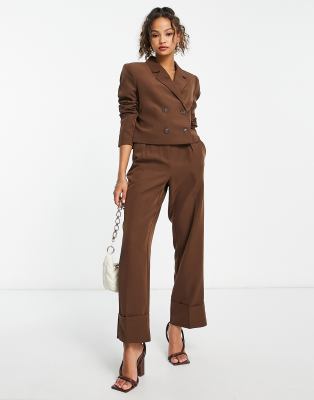 Vero Moda – Aware – Elegante Anzughose in Braun mit Umschlag