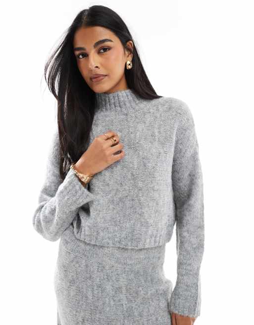 Vero Moda – Aware – Grobstrickpullover in Hellgrau meliert mit Rollkragen, Kombiteil