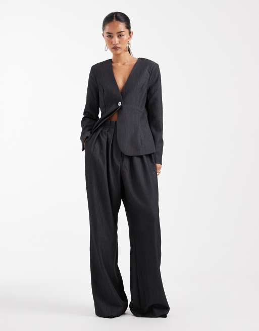 Vero Moda – Elegante Bundfaltenhose in Dunkelgrau meliert mit hohem Bund, Kombiteil