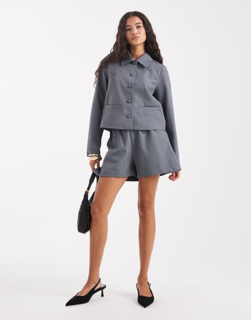 Vero Moda – Elegante Shorts in grau meliert, Kombiteil
